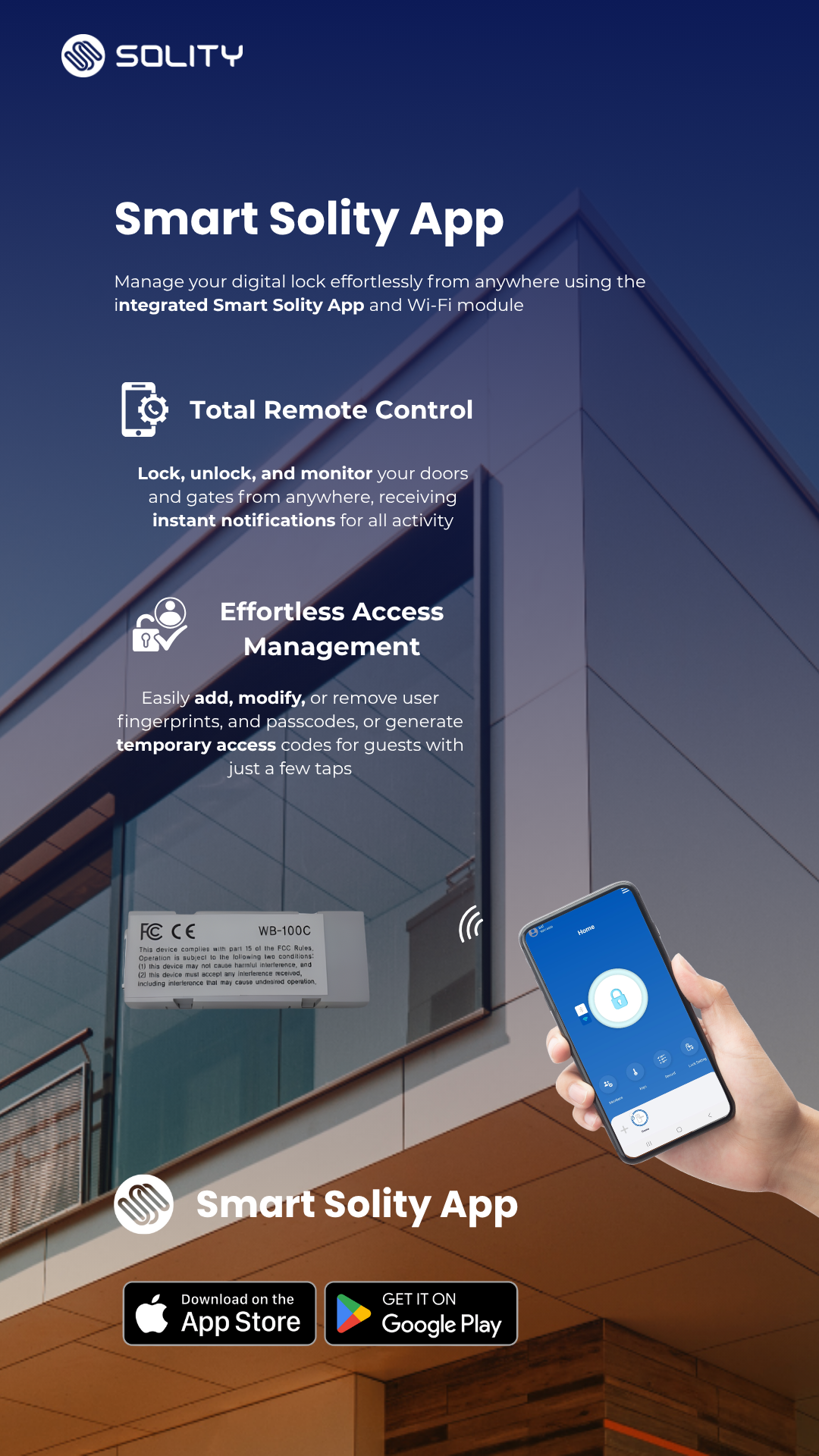 - Wi-Fi Module : Allows you to manage and monitor your lock only through the Smart Solity App.